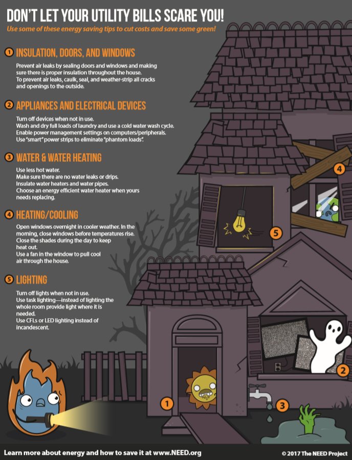 The NEED Project incorporated some Halloween themed graphics and the Alliance to Save Energy outlined a few ways to help reduce our consumption and lower our energy bills in the process: